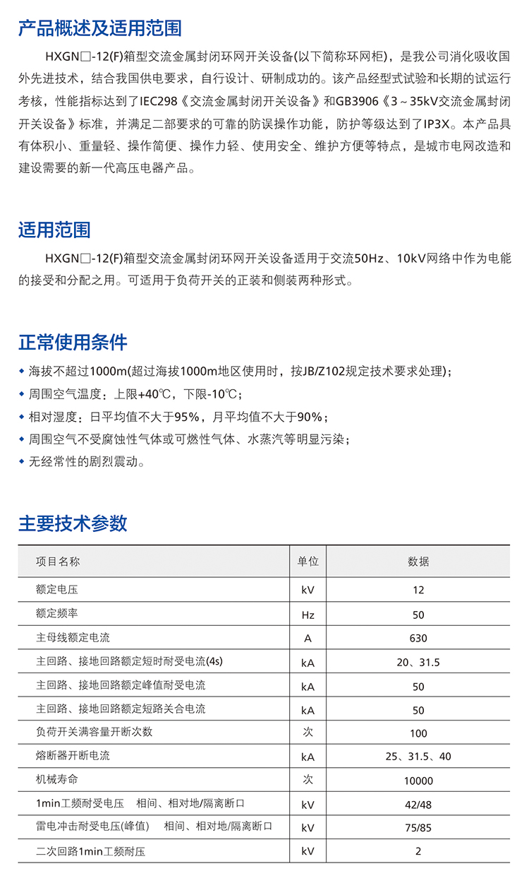 HXGN-12(F)箱型交流金屬封閉環網開關設備